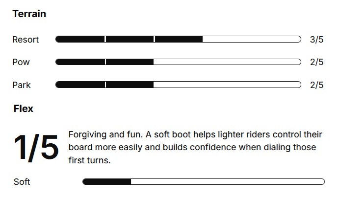 - The relaxed flex delivers all-day comfort and is ideal for mastering turns and venturing into the park.