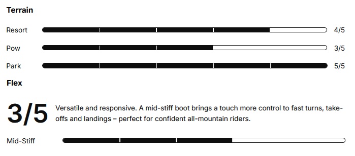 - Exo Spine - An external backstay that supports the whole boot and transfers energy instantly from heel to toe. It connects seamlessly to the outsole via our Transition Zone, so you won't hook up on the binding's heelcup when you enter or exit your binding.