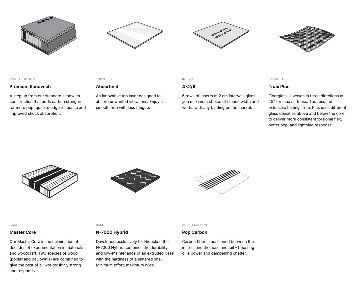 A step up from our standard sandwich construction that adds carbon stringers for more pop, quicker edge response and improved shock absorption.